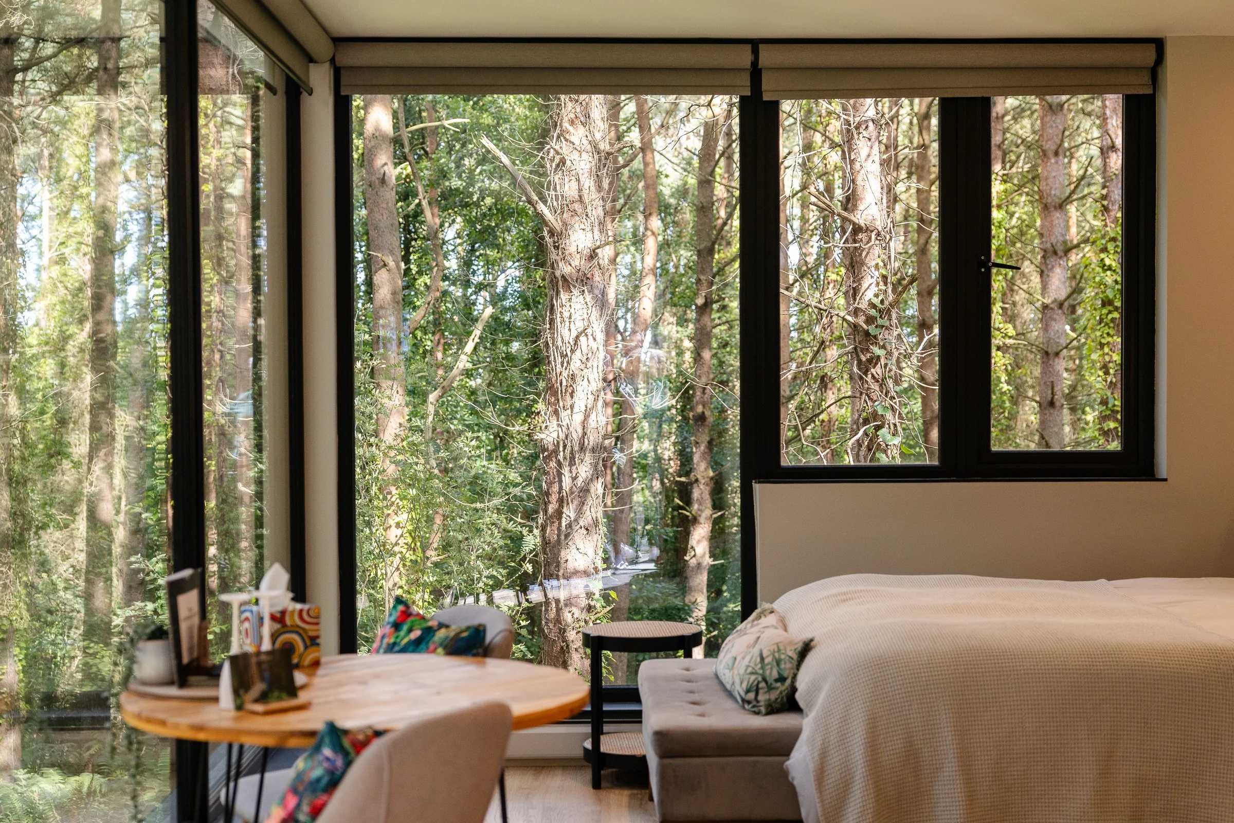 Enjoy stunning forest views from our luxury tree-top lodge, Swallow’s Nook. Relax in your private hot tub amid peaceful woodland scenery…