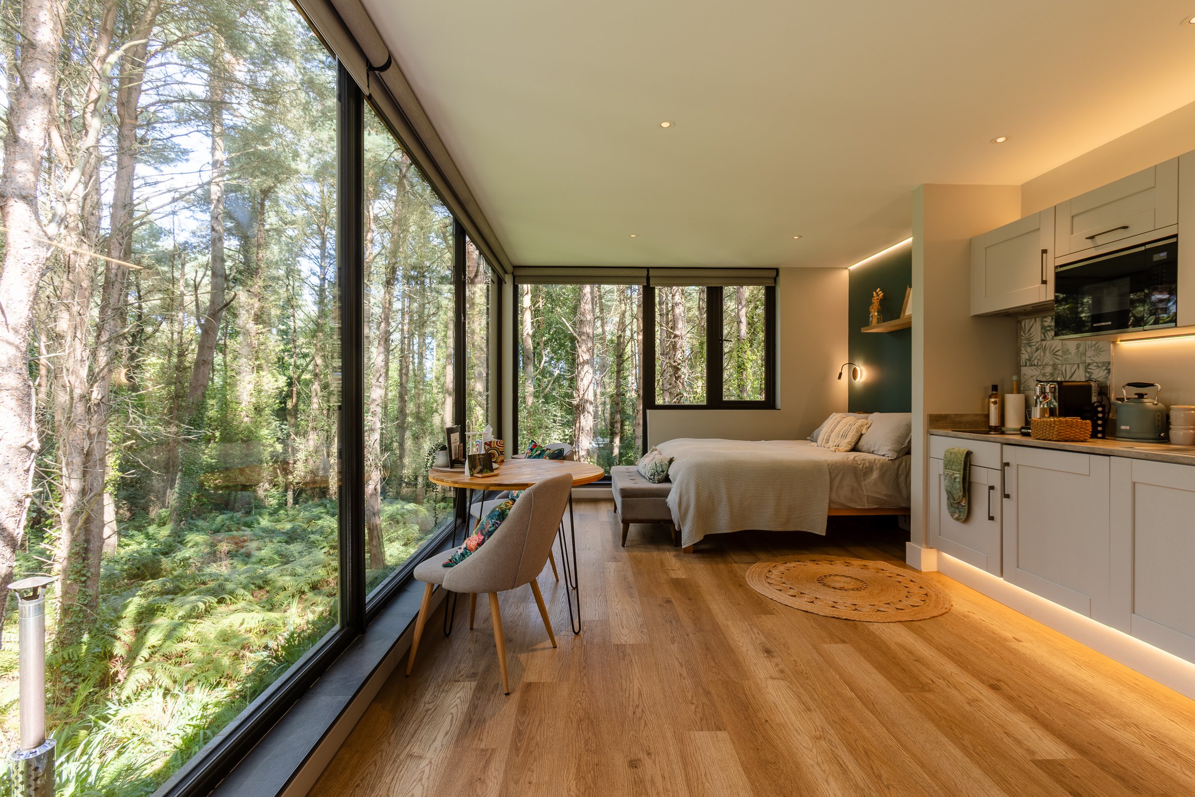 Enjoy stunning forest views from our luxury tree-top lodge, Swallow’s Nook. Relax in your private hot tub amid peaceful woodland scenery…