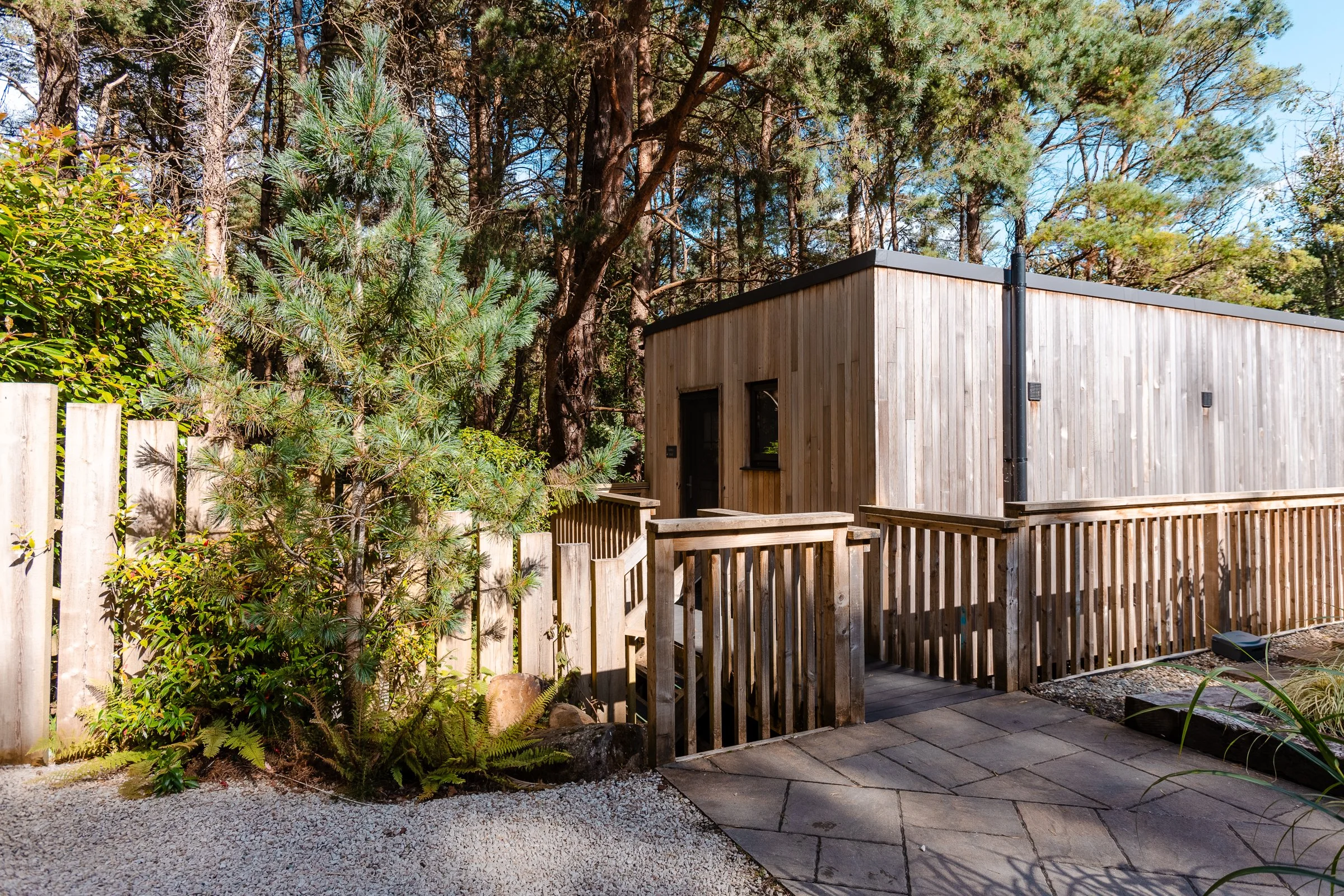 Robin’s Perch, our luxury ground-floor lodge, with private patio is surrounded by breath-taking woodland.