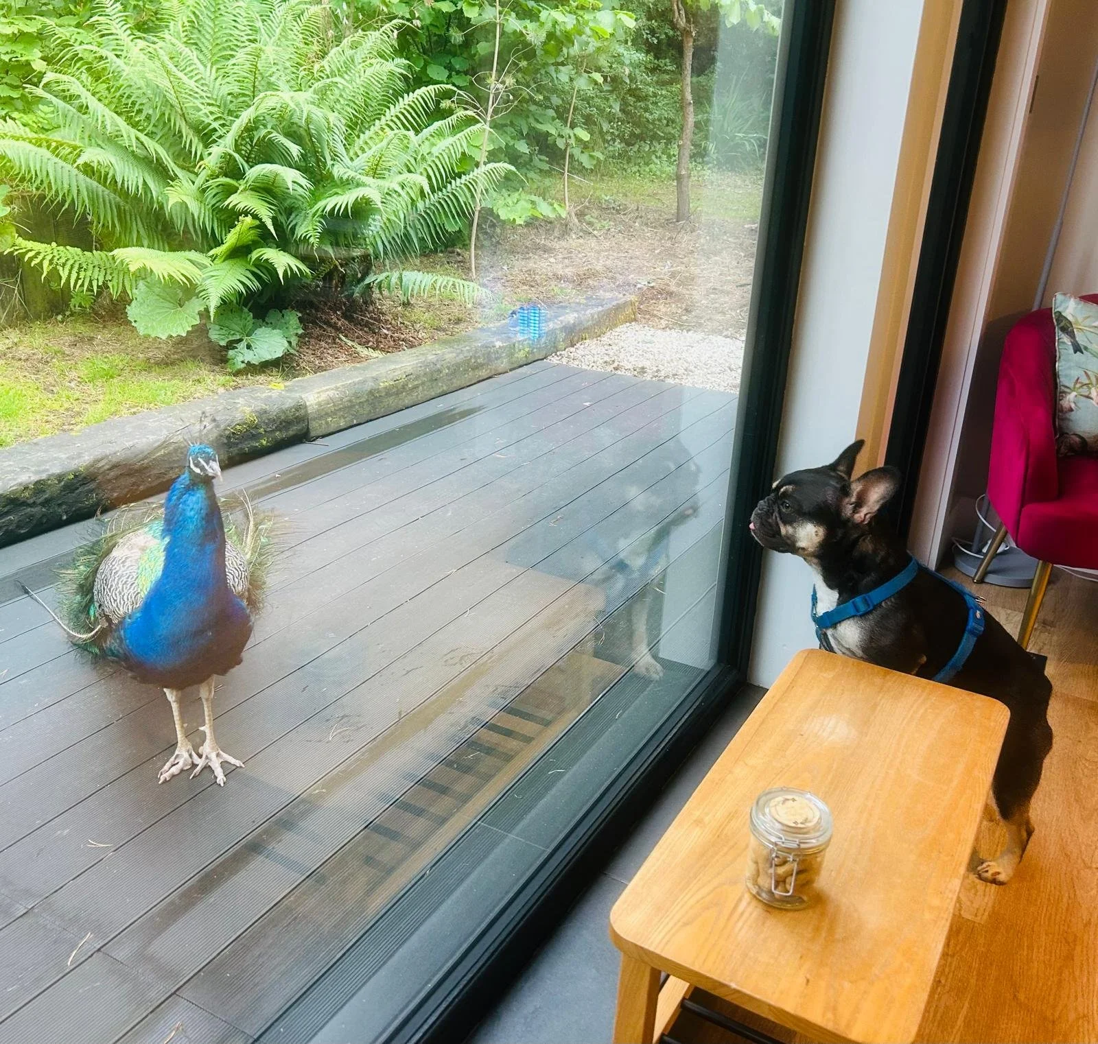Guests frequently have the rare and special opportunity to share a quiet, intimate moment with the peacocks when they pause nearby, adding a truly distinctive and enchanting touch of natural beauty to this serene and tranquil woodland retreat.